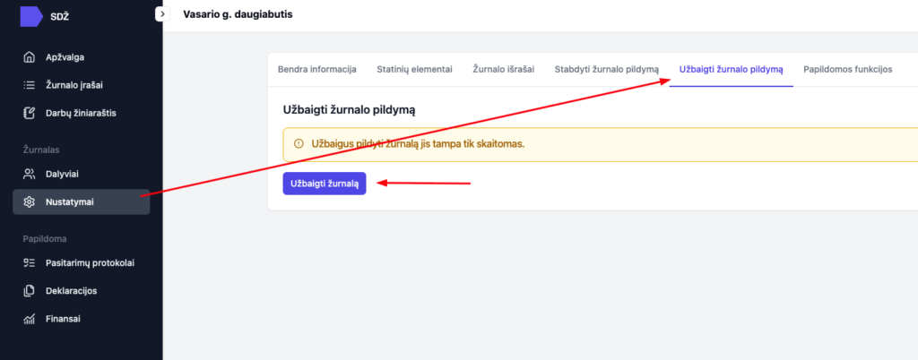 Lango apačioje, skiltyje „Užbaigti žurnalo pildymą“, spauskite mygtuką „Užbaigti žurnalą“.