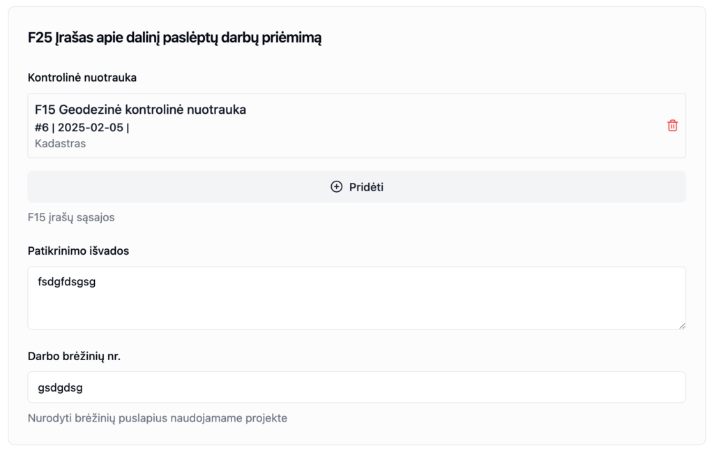 Geodezinę nuotrauką (F15) – pasirinkite iš anksčiau sukurtų F15 formų (jei yra).